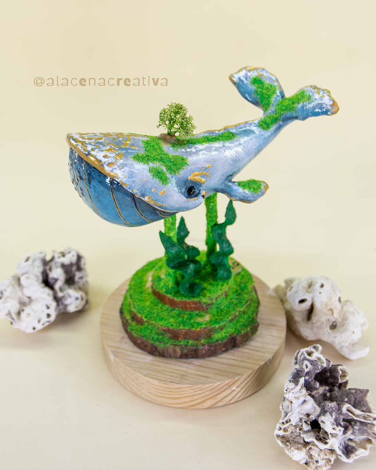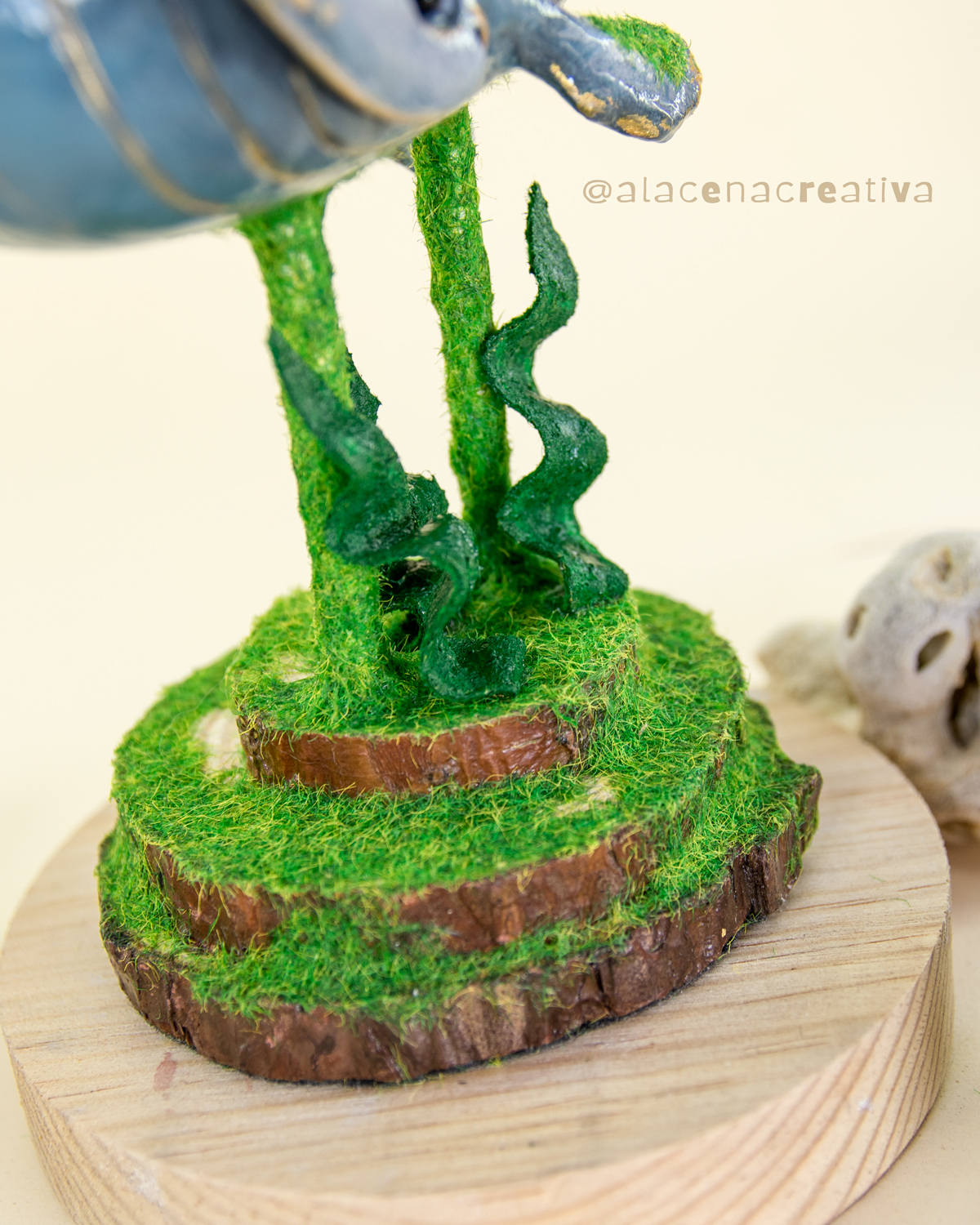 *Materiales: pasta de secado al aire, musgo seco, base de madera, fieltro.