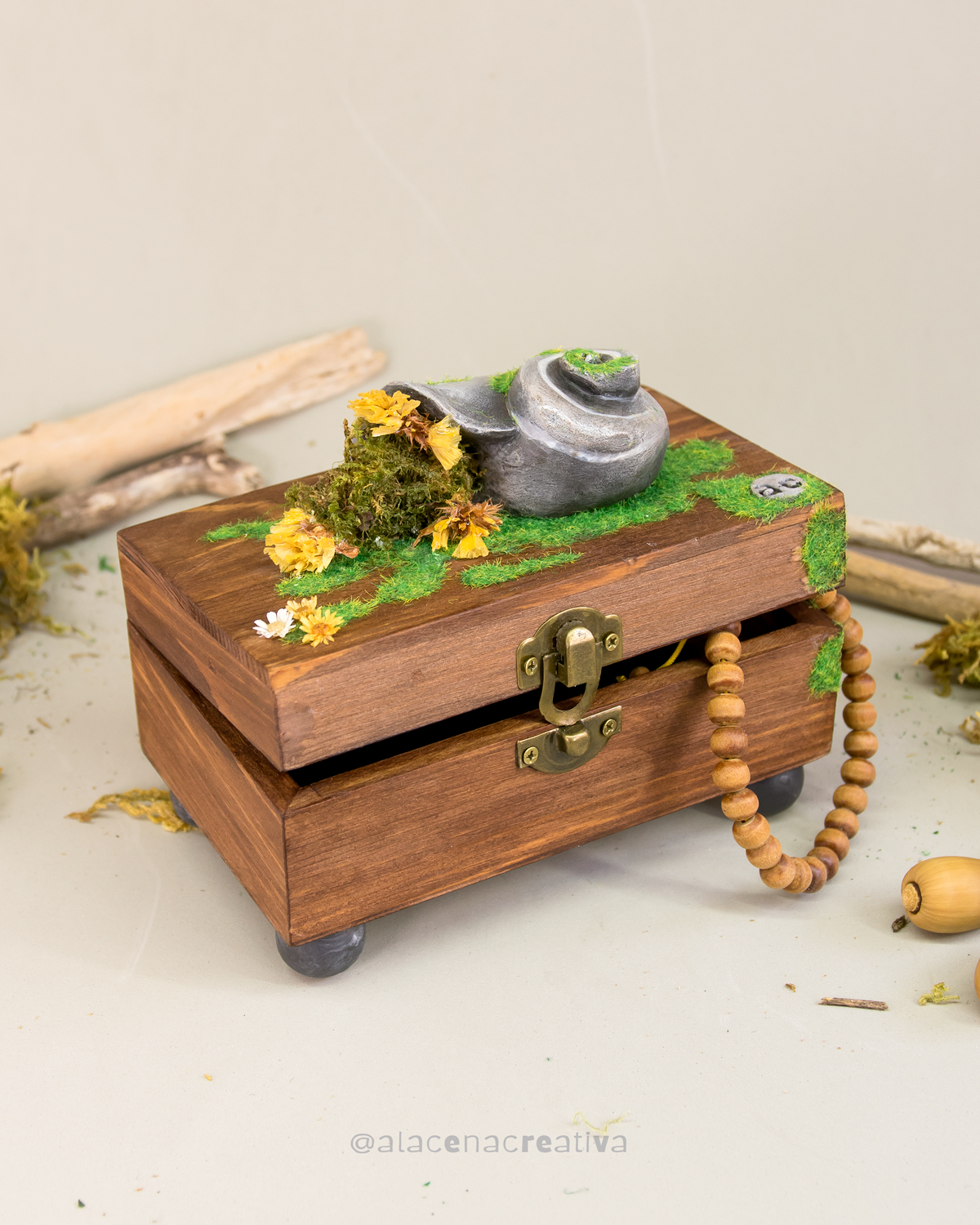 Esta caja decorada artesanalmente, aunque esté vacía, está llena de vida con flores y detalles de naturaleza. Es un recordatorio de que no necesitas a nadie para sentirte completo, porque tu hogar empieza dentro de ti. Ideal para guardar cosas que tengan un significado especial, una joya antigua, unas llaves, una flor…