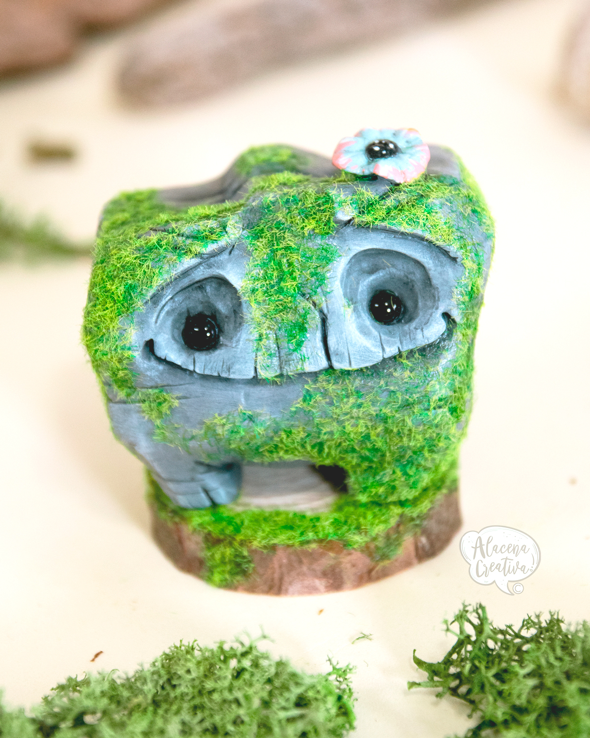 *Materiales: arcilla polimérica, base de madera, musgo seco.