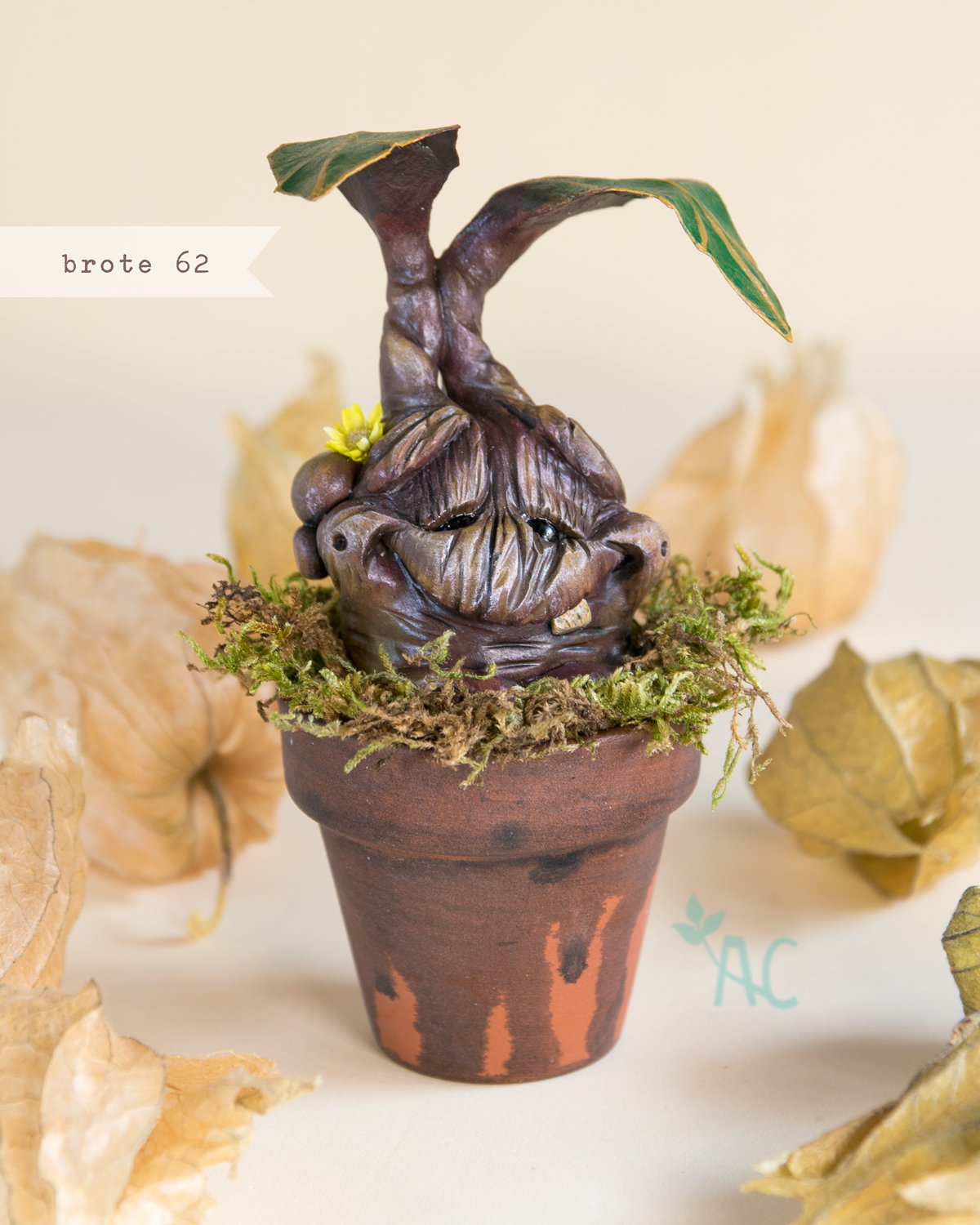 *Materiales: arcilla polimérica, maceta de barro, musgo seco.
